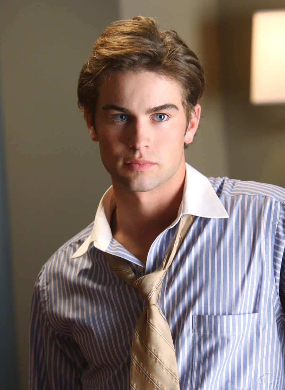 Unveil sophistication with this stylish wallpaper featuring a man in a striped shirt and tie, perfect for an elegant decor theme.