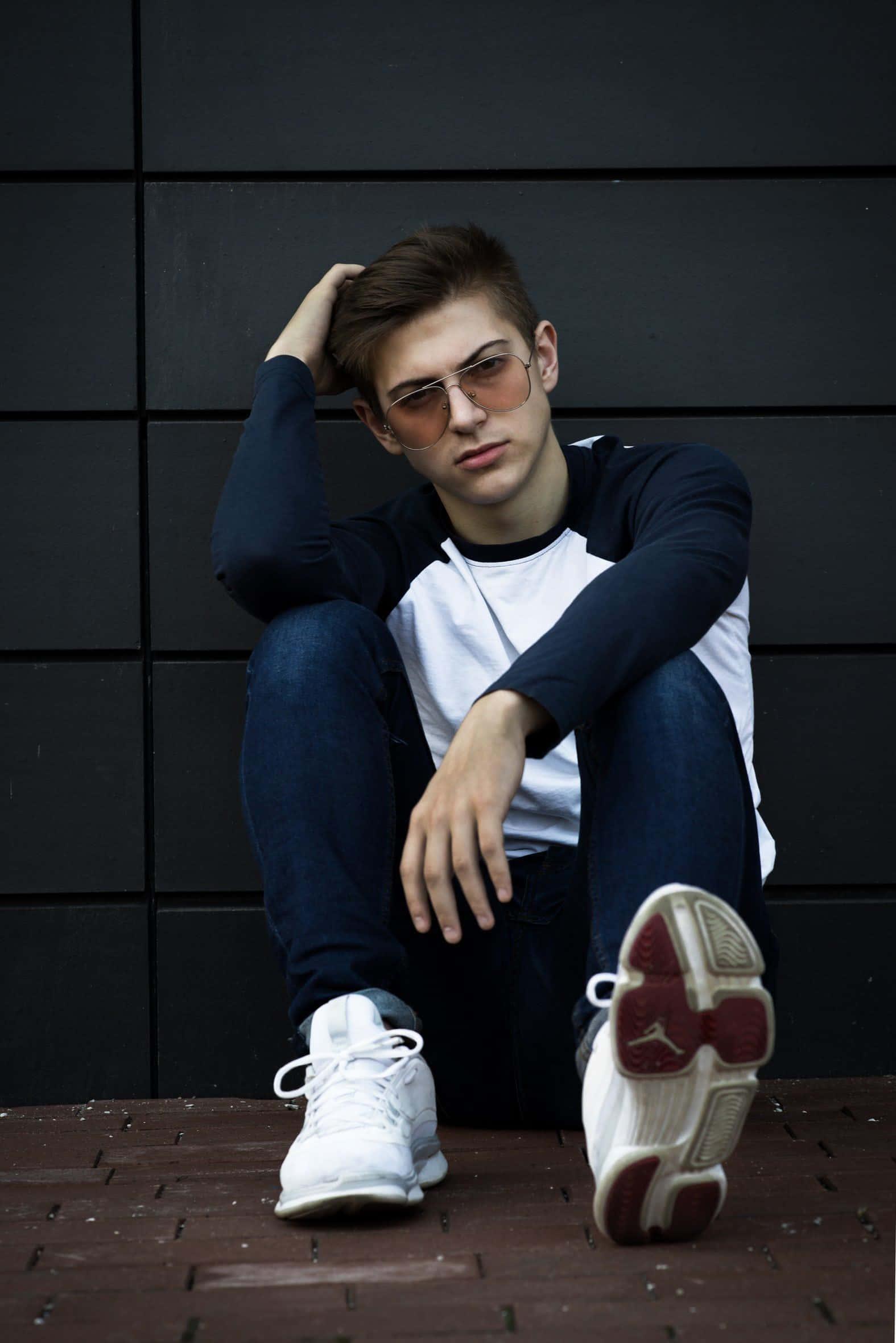 Add a touch of cool with this wallpaper of a man wearing sunglasses, ideal for a relaxed and trendy atmosphere in your space.