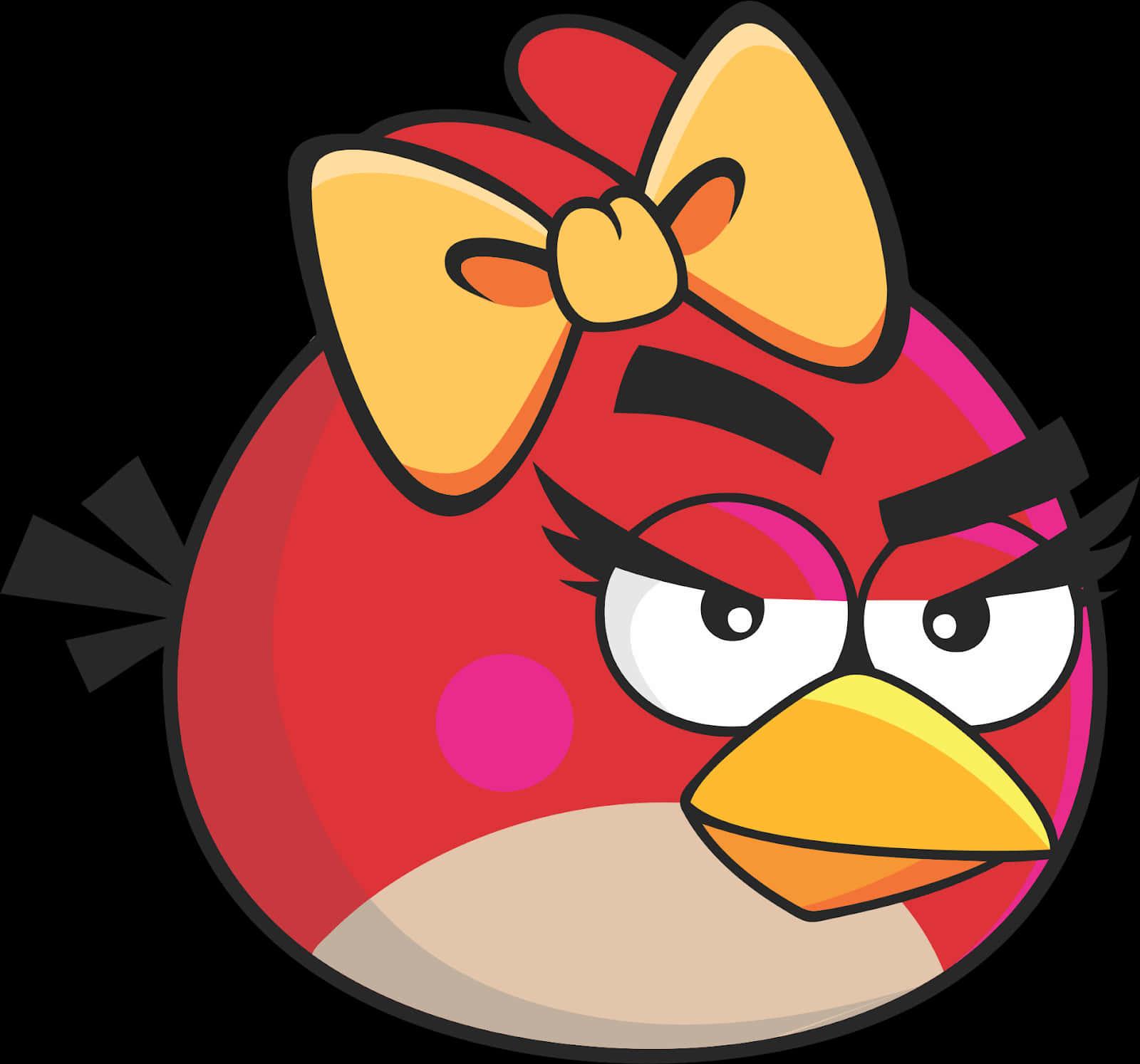 Meet the feisty red female character from Angry Birds, depicted in a graphic illustration with a charming bow.