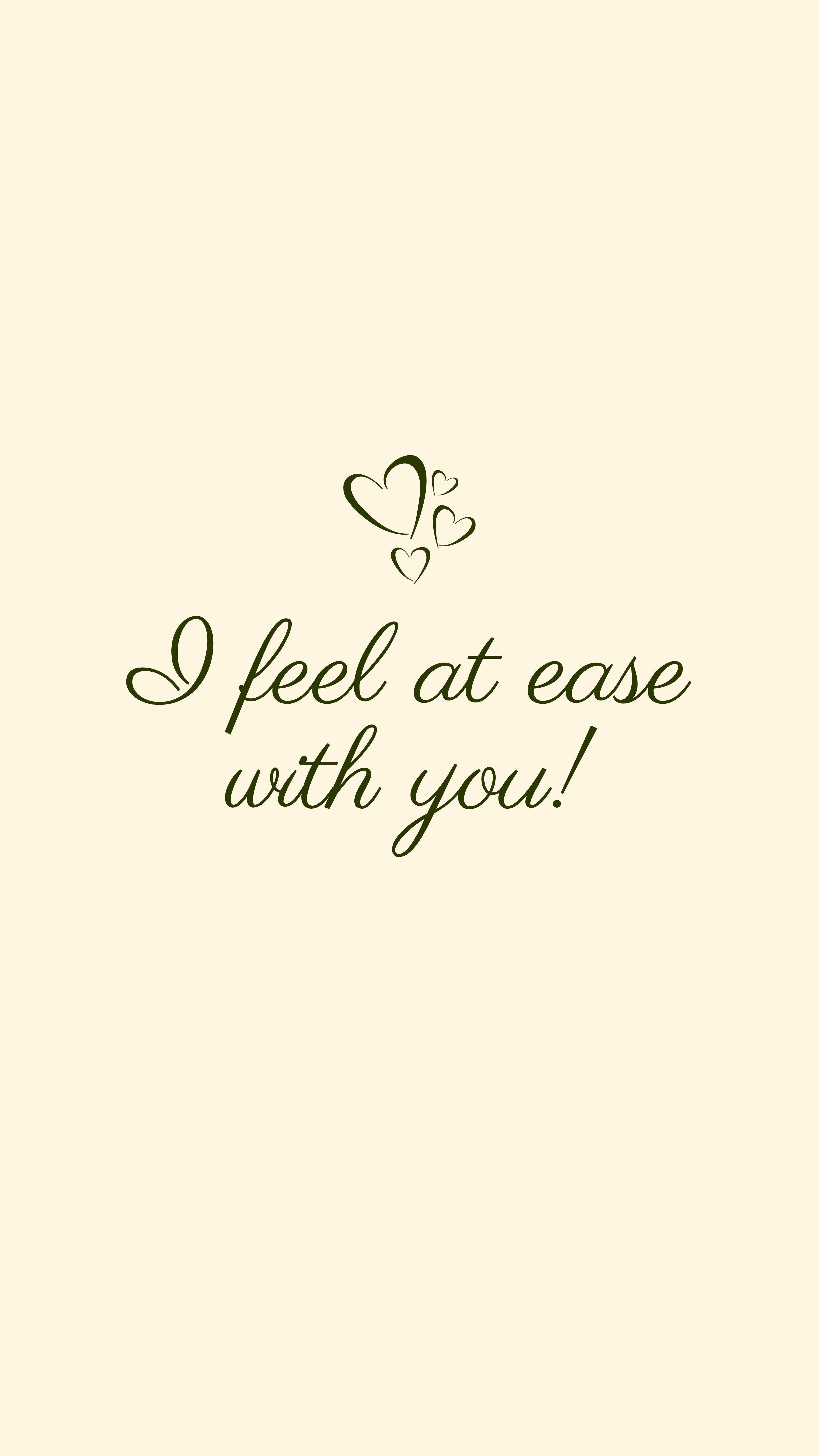Feel at ease with this chic wallpaper featuring the sweet quote: 'I feel at ease with you!' in a minimalist design.