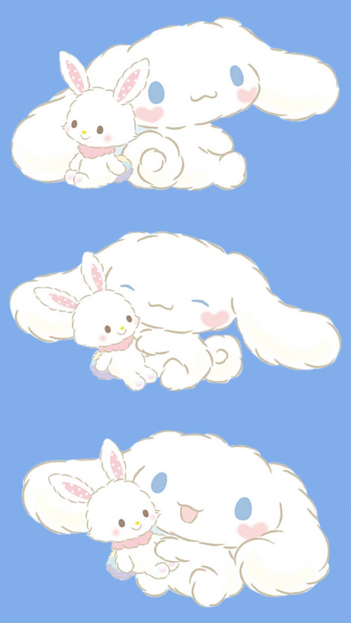 Delight in this cute collage of Cinnamoroll and his bunny plushie, perfect for animal lovers.
