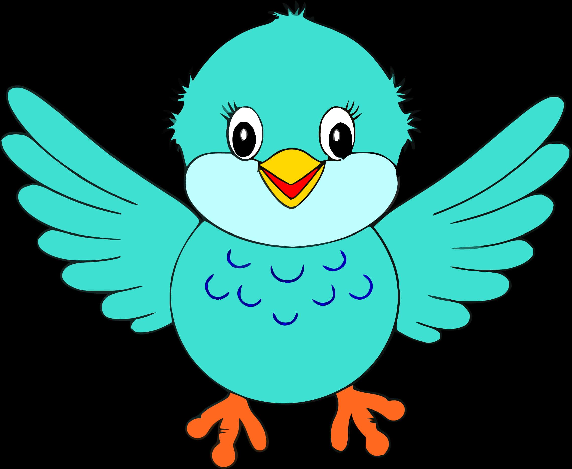 Brighten your decor with a cheerful blue bird cartoon, featuring big eyes and outstretched wings, beautifully illustrated against a dark background.