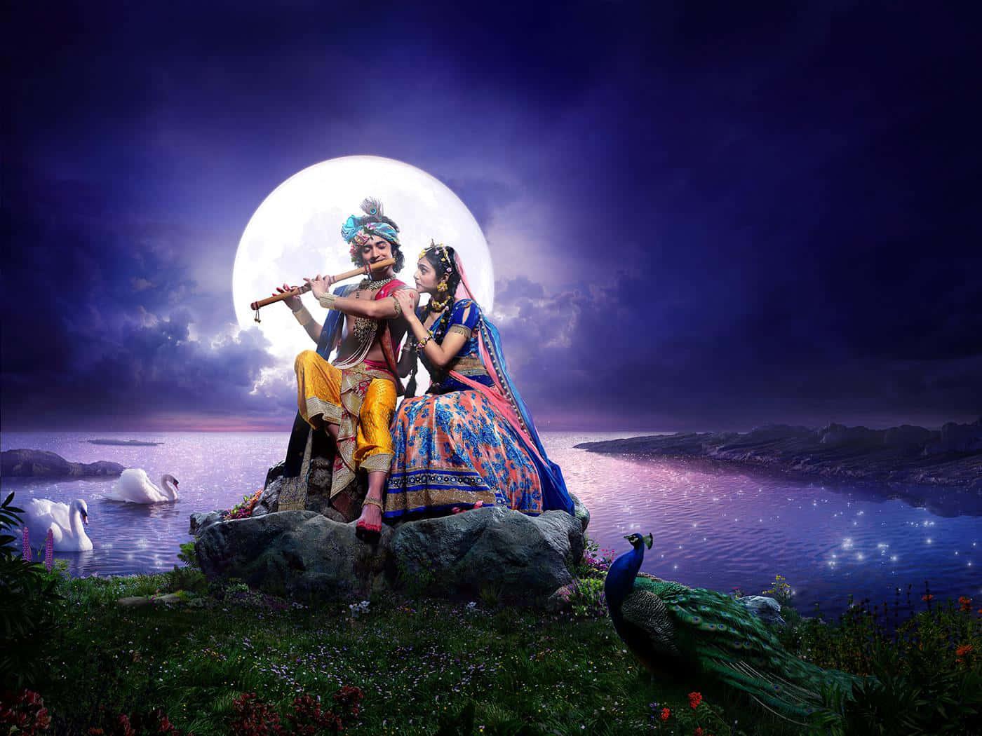 Delight in a high-resolution image capturing the divine romance of Radha and Krishna, rich in colors and spiritual depth.