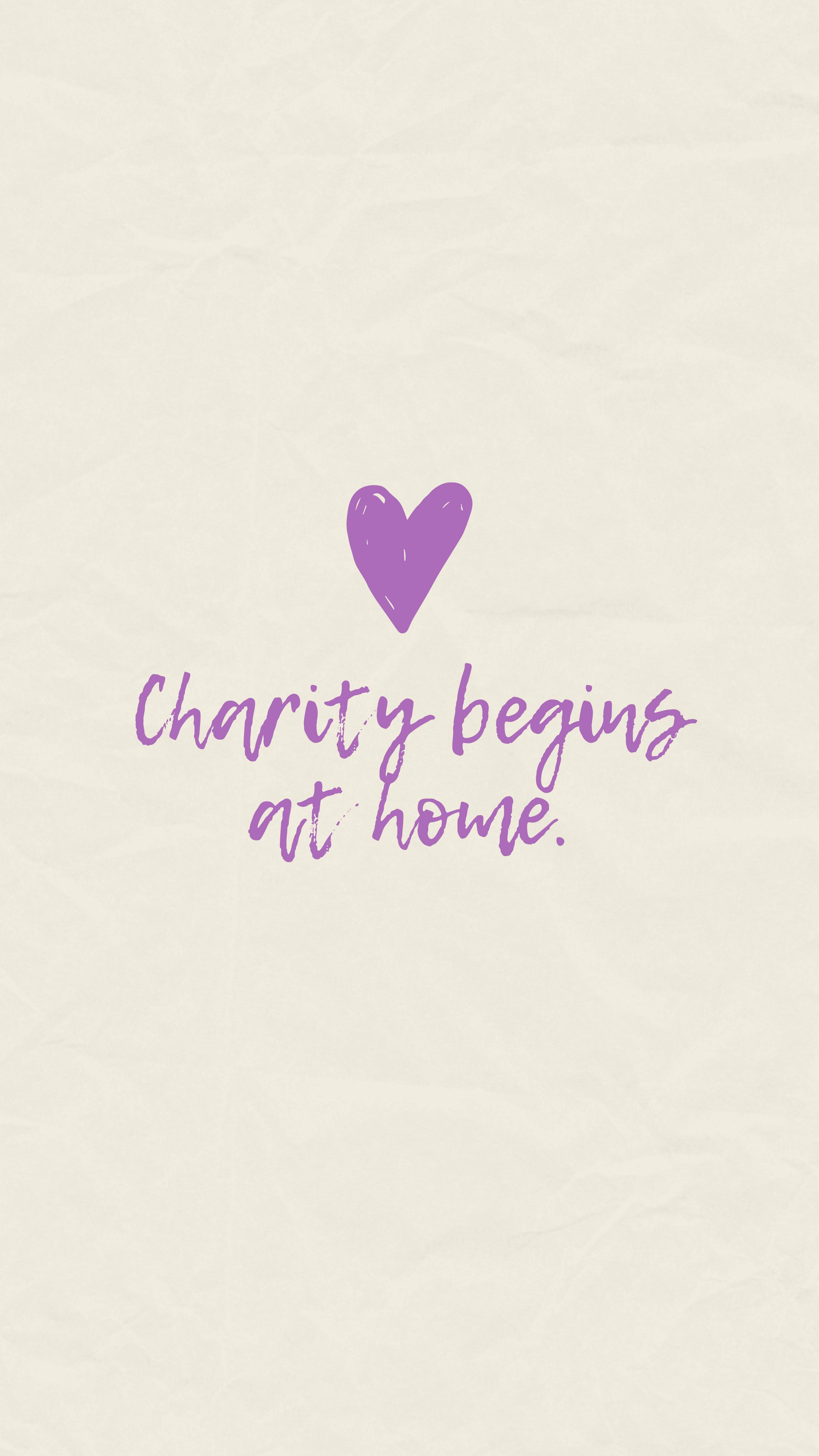 Celebrate charity with this charming fanart quote: 'Charity begins at home,' set against a soft pastel backdrop.