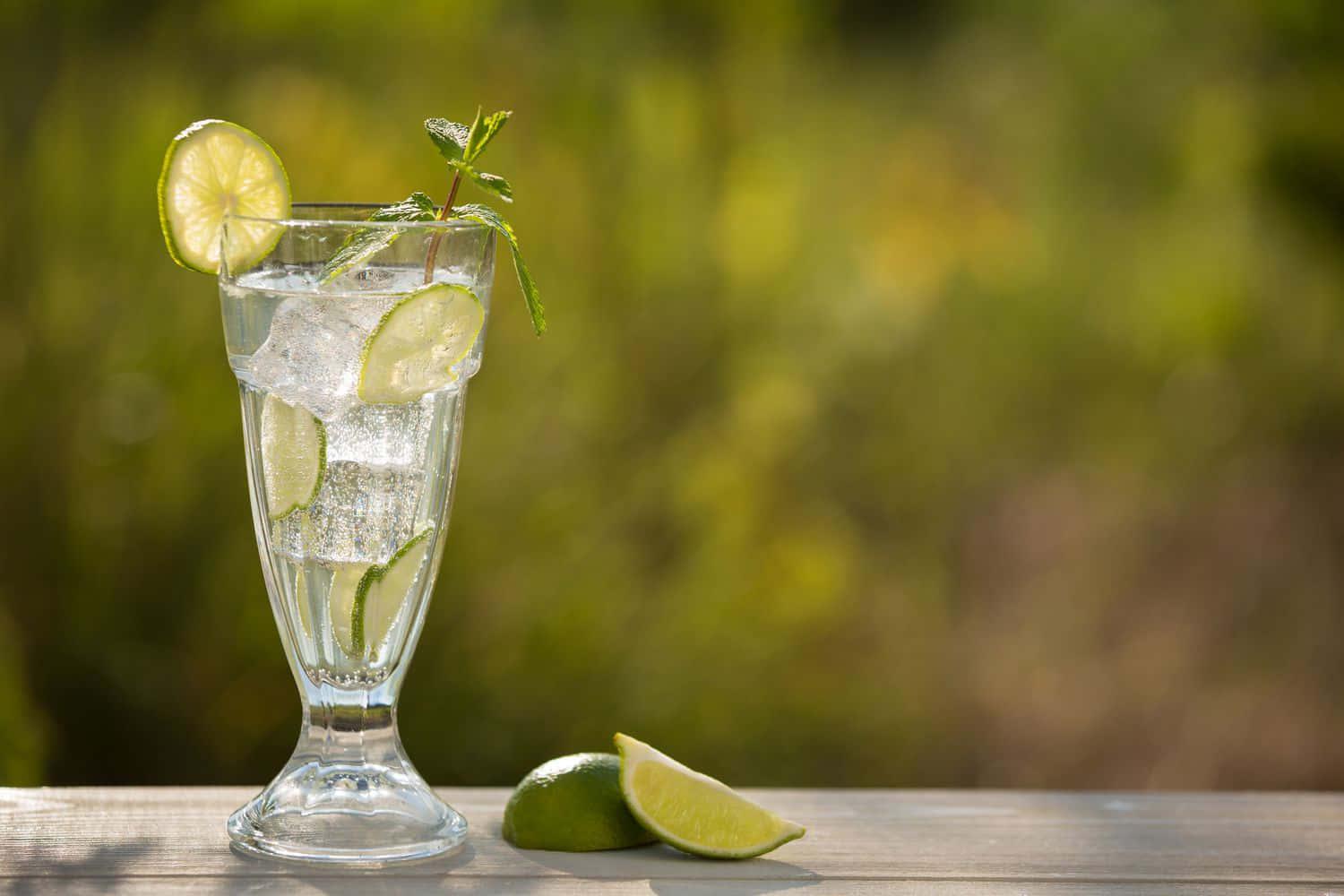 Relax with a refreshing lime cocktail served in a stylish glass at a dimly-lit lounge, promising tranquility after a long day.