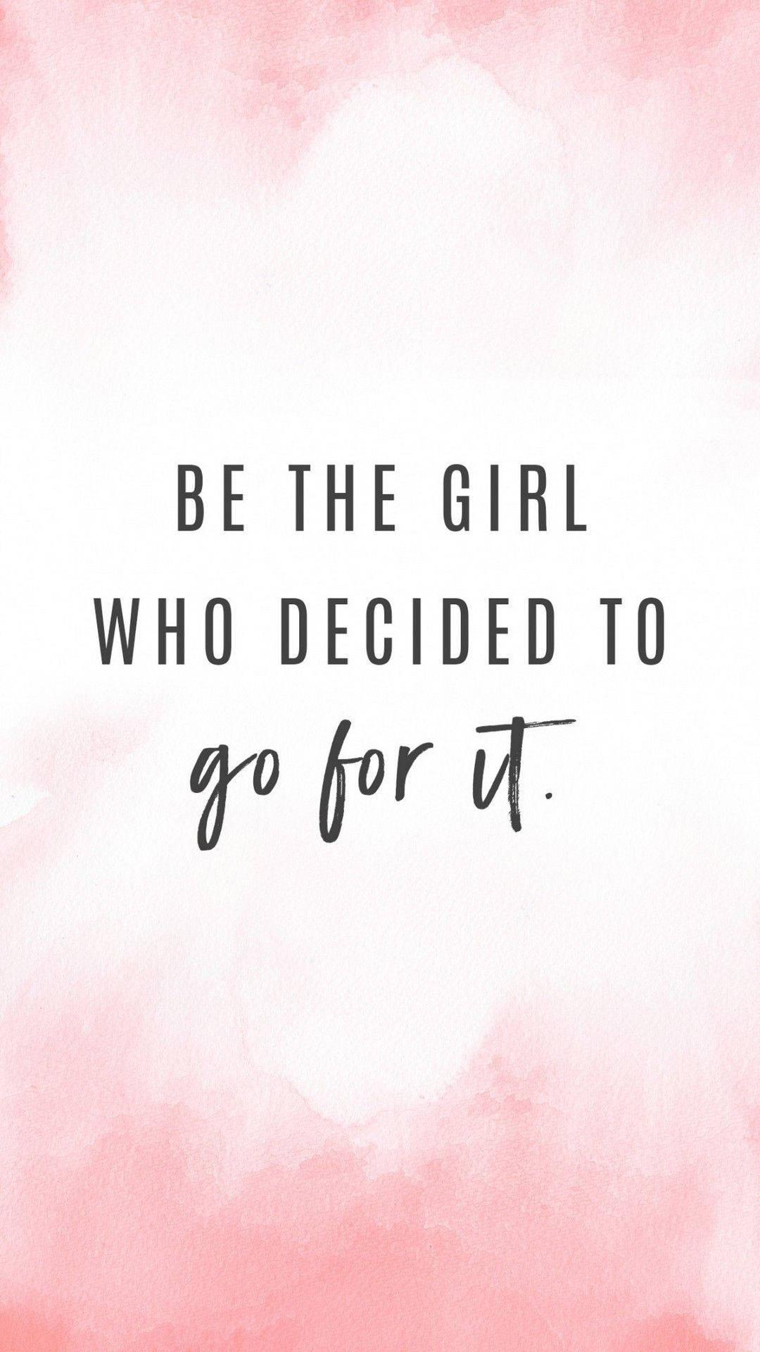 Empower yourself with adorable quotes for girls, 'Be the girl who decided to go for it,' set against a light pink background.