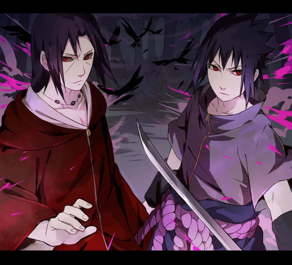 Admire the serious expressions of Itachi and Sasuke Uchiha in a captivating moment of brotherhood.