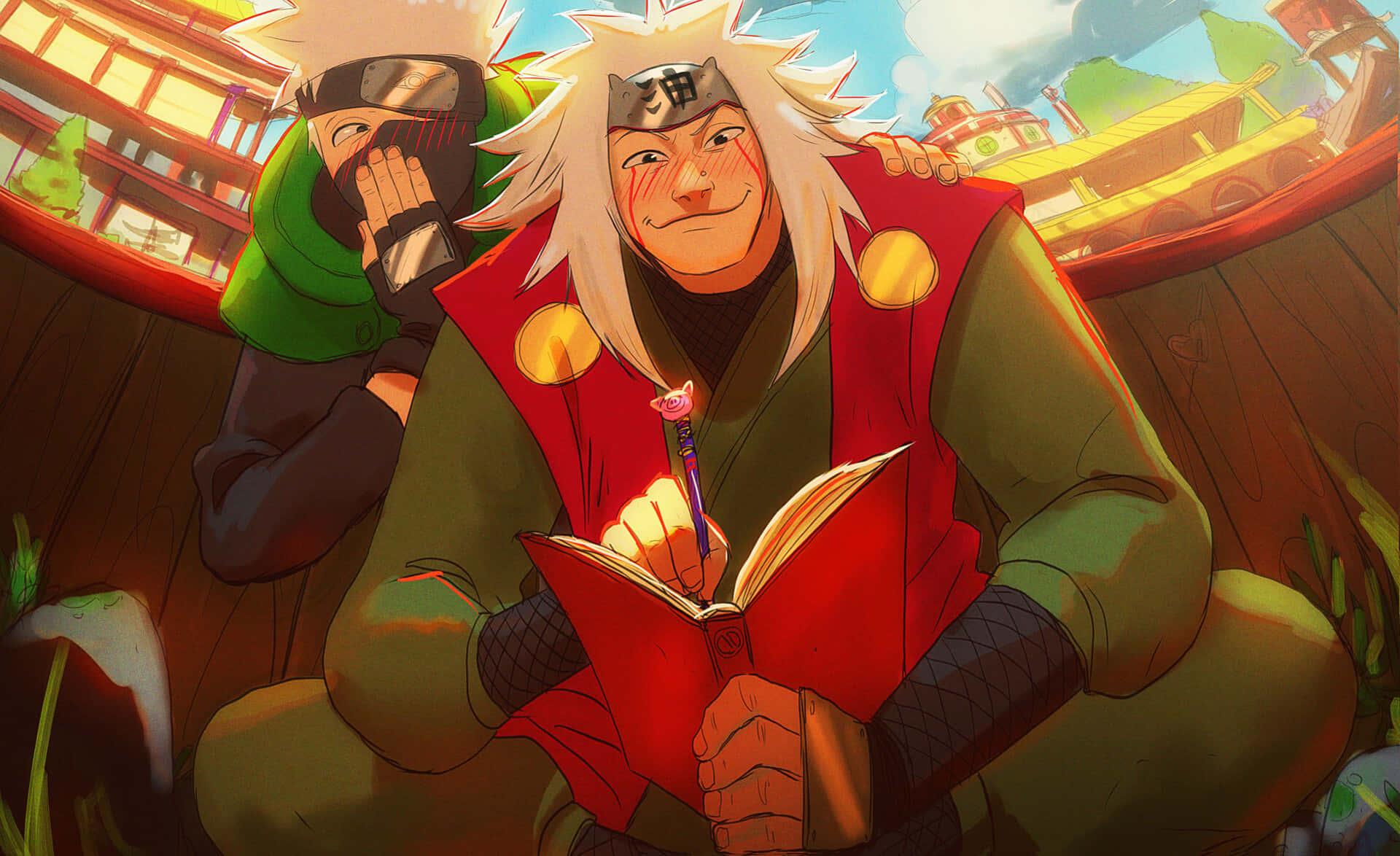 Laugh along with this playful picture of Jiraiya and Kakashi from Naruto, showcasing their fun personalities.