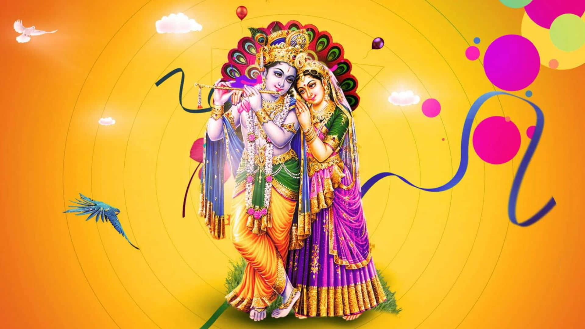 Experience Krishna and Radha in traditional attire, beautifully capturing their cultural essence and divine love.