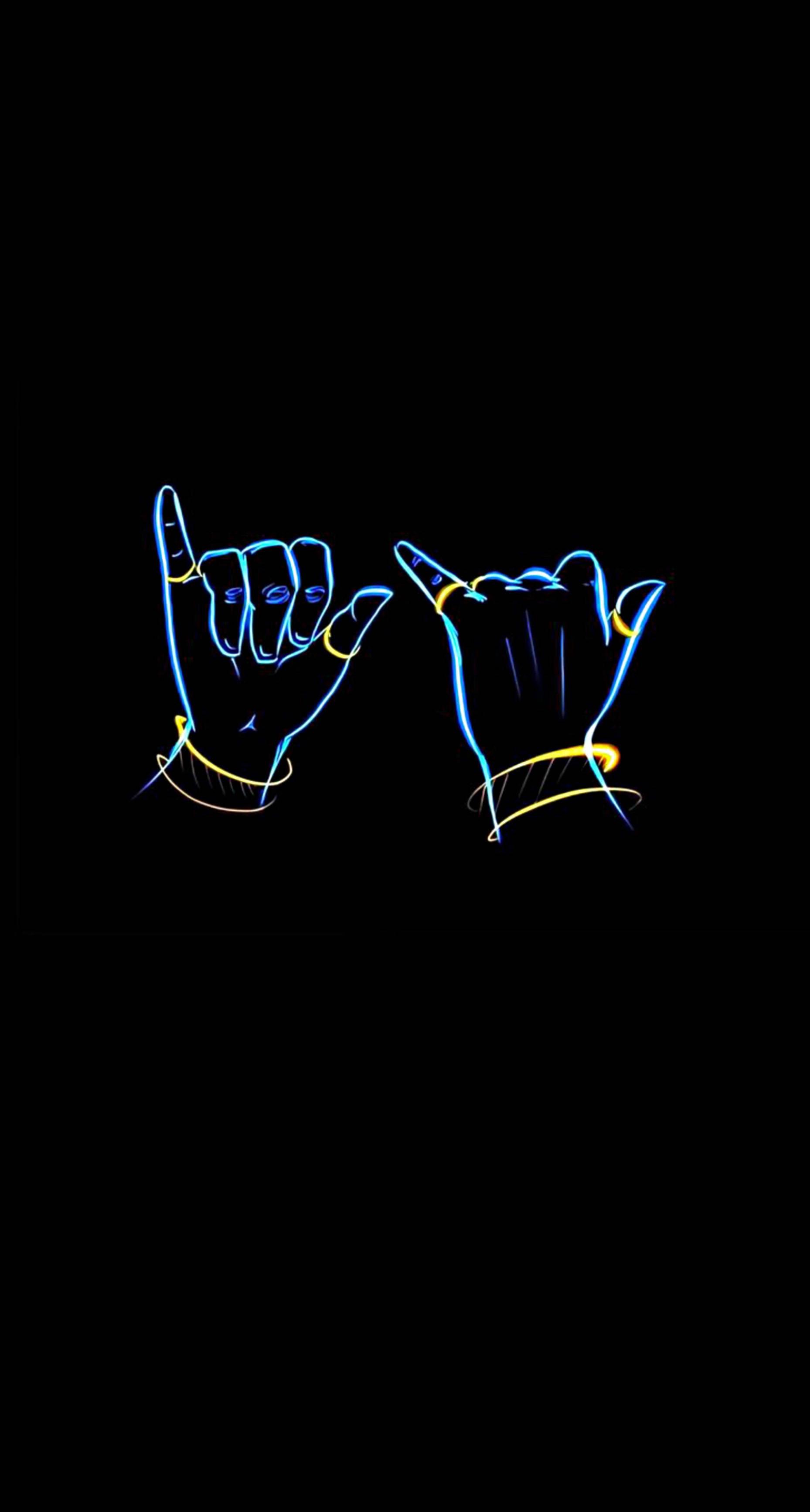 Cool iPhone wallpaper featuring Krishna's blue hands poised on his Bansuri, set against a striking black background.