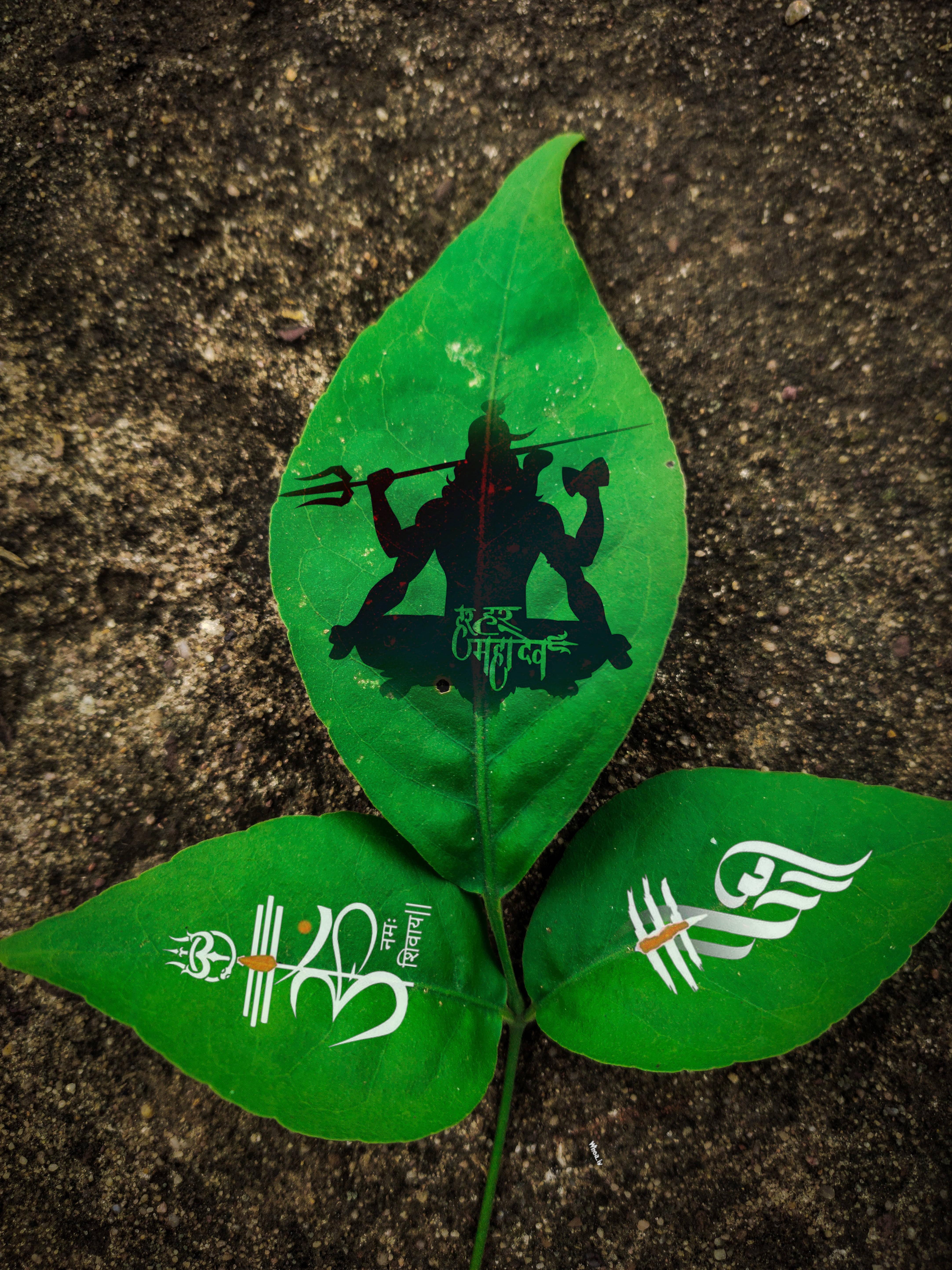 Bring creativity to life with our full HD leaf art featuring Mahadev, complemented by sacred Hindu texts.