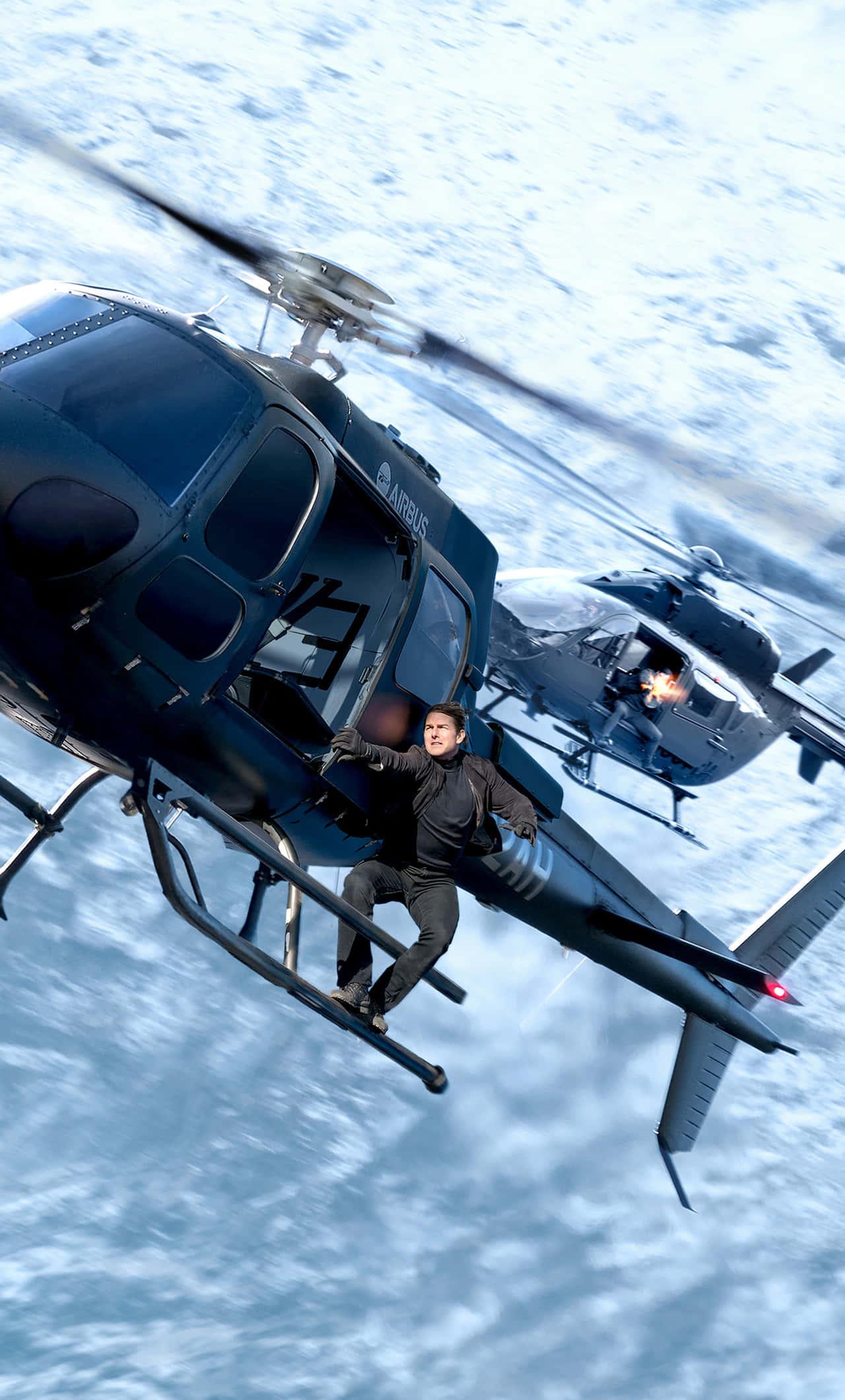 Capture the excitement with this image of a man outside a flying helicopter, symbolizing adventure.