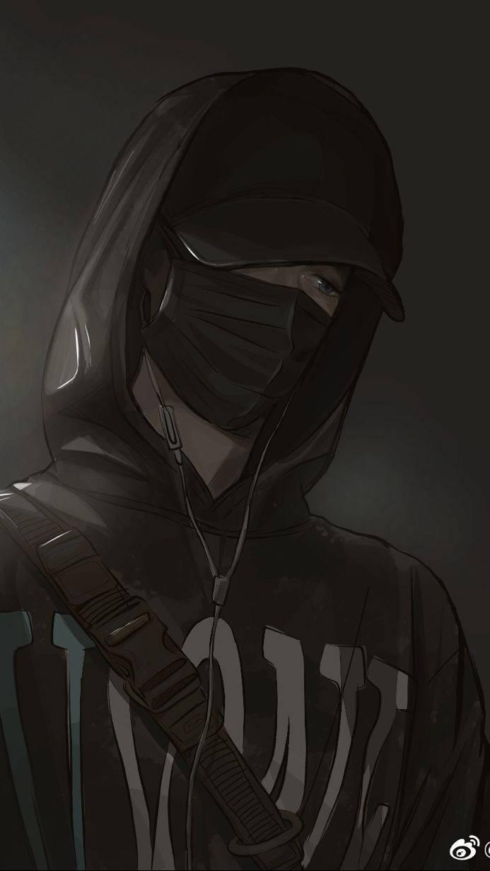 Unveil the mystery of this anime boy in a dark hoodie and mask, creating an intriguing atmosphere in this captivating wallpaper.