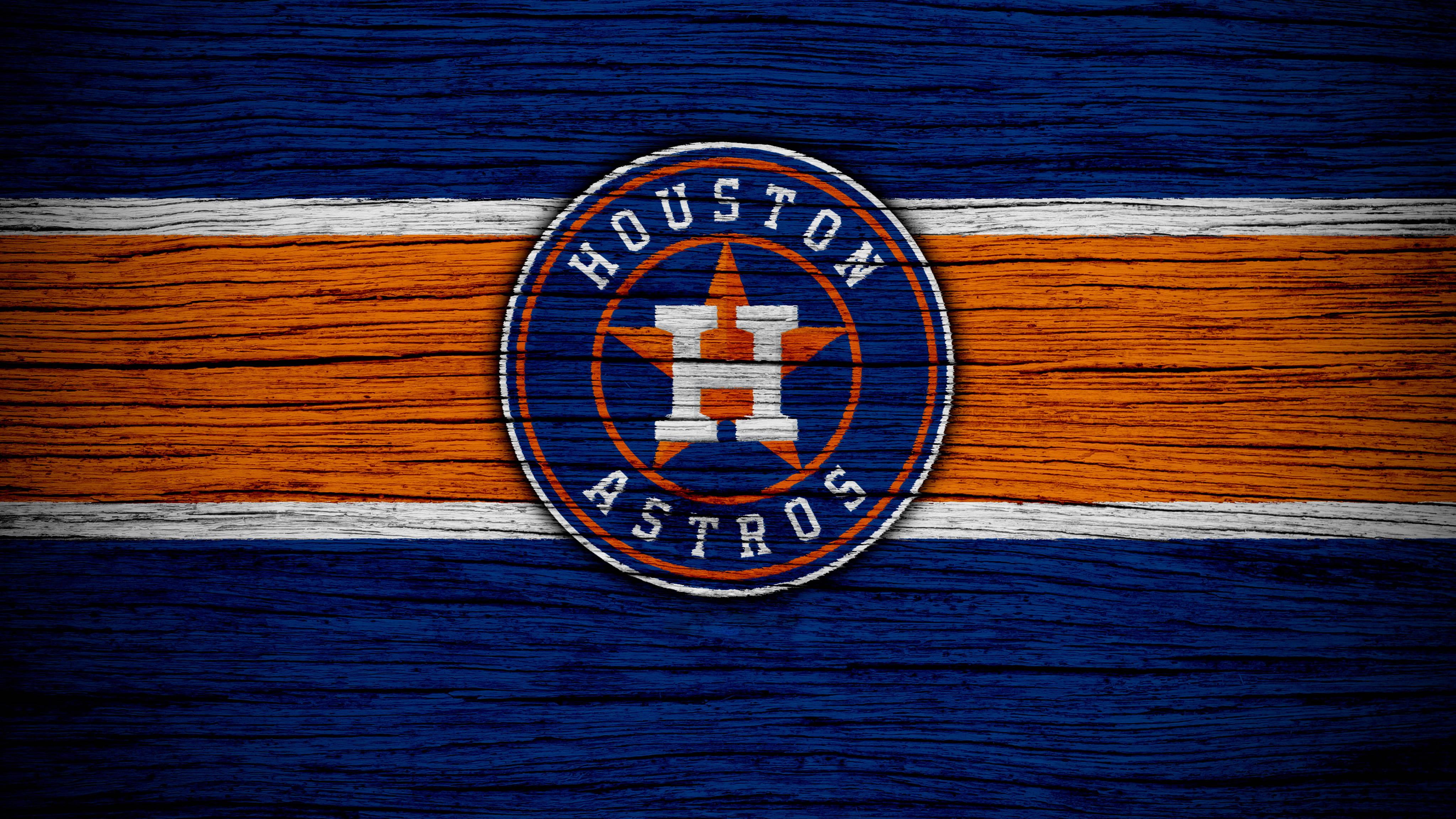 Explore the vibrant MLB Houston Astros logo art with a textured wood background in blue, white, and orange hues. Perfect for sports fans!