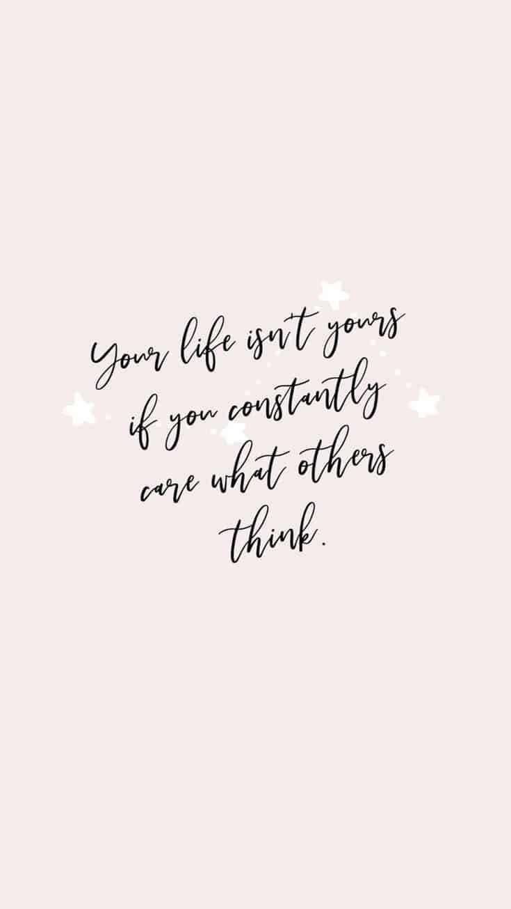 Stay true to yourself with the motivational quote, 'Your life isn't yours if you constantly care what others think,' on a pastel pink background.