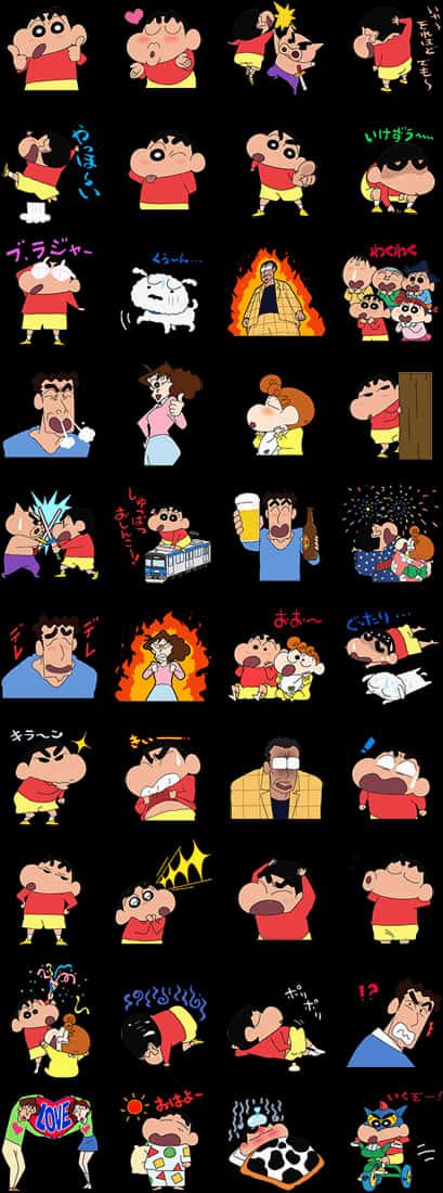 Explore a colorful collage of Shin Chan's funniest moments and expressions in this captivating wallpaper.