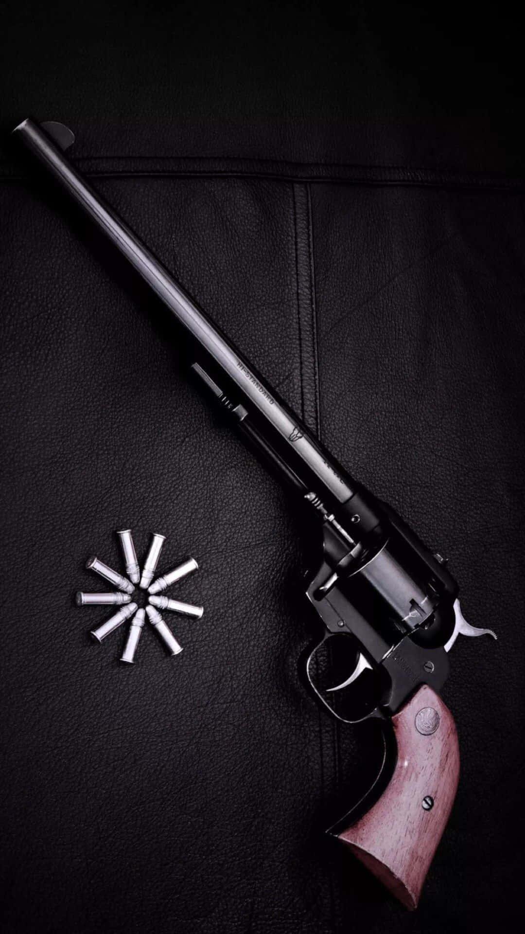 Explore the Vintage Revolver on Black, showcasing a classic firearm with bullets, perfect for vintage gun collectors and decor.